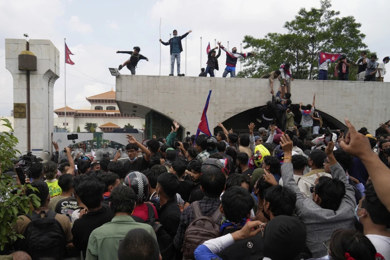According to a local official, some of the Nepal Protest the majority of whom were young broke through a barricade to enter the parliament complex in Kathmandu, burning an ambulance and throwing objects at the riot police lines that were securing the building.